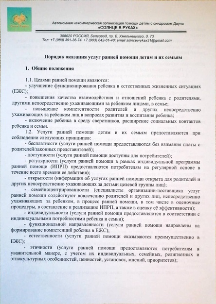 При реализации услуг ранней помощи специалисты работают с семьей как партнеры и сотрудники, обучая и помогая родителям развивать малыша непрерывно в домашних условиях. Семья принимает самое активное участие на всех этапах предоставления услуг. Родители, это не получатели услуг, а партнеры, равноправные члены команды, которые работают с малышом наравне со специалистами.